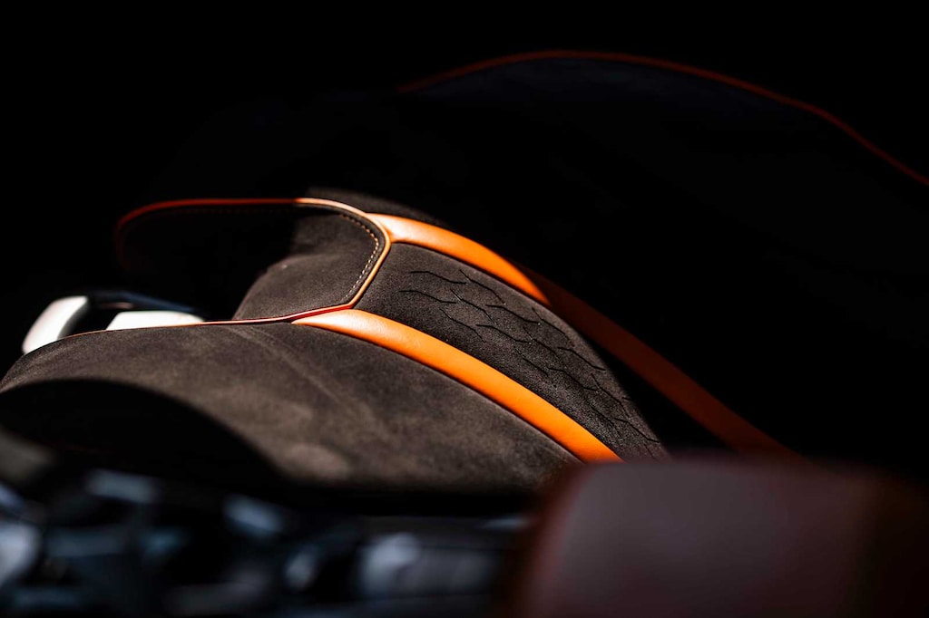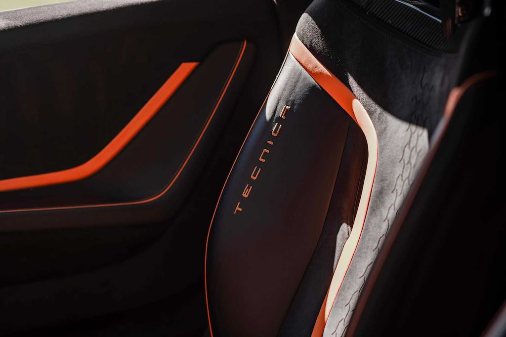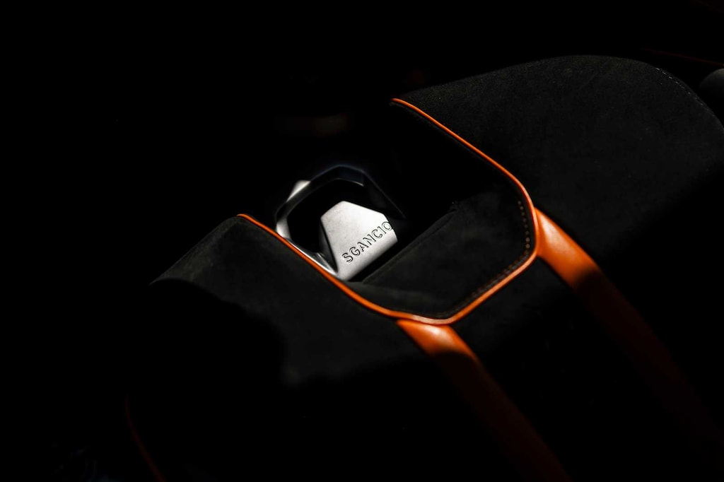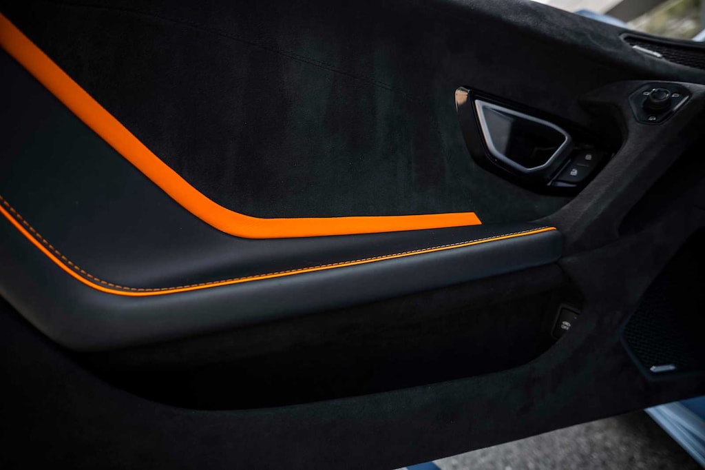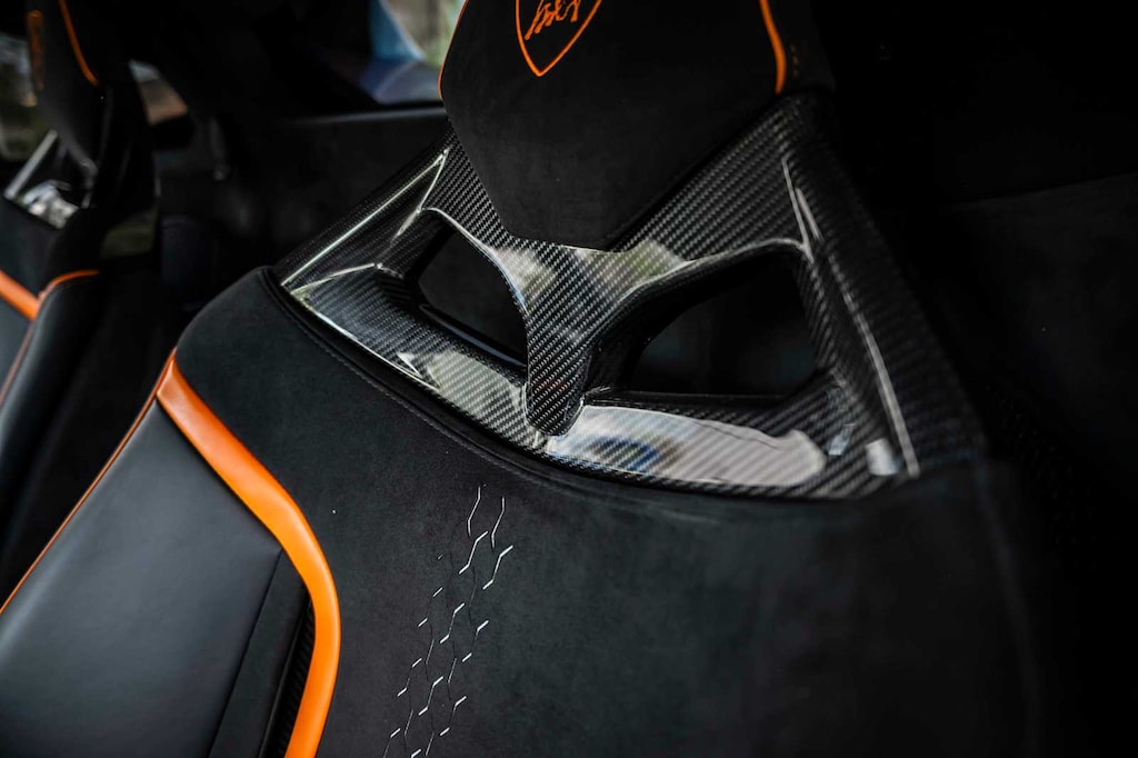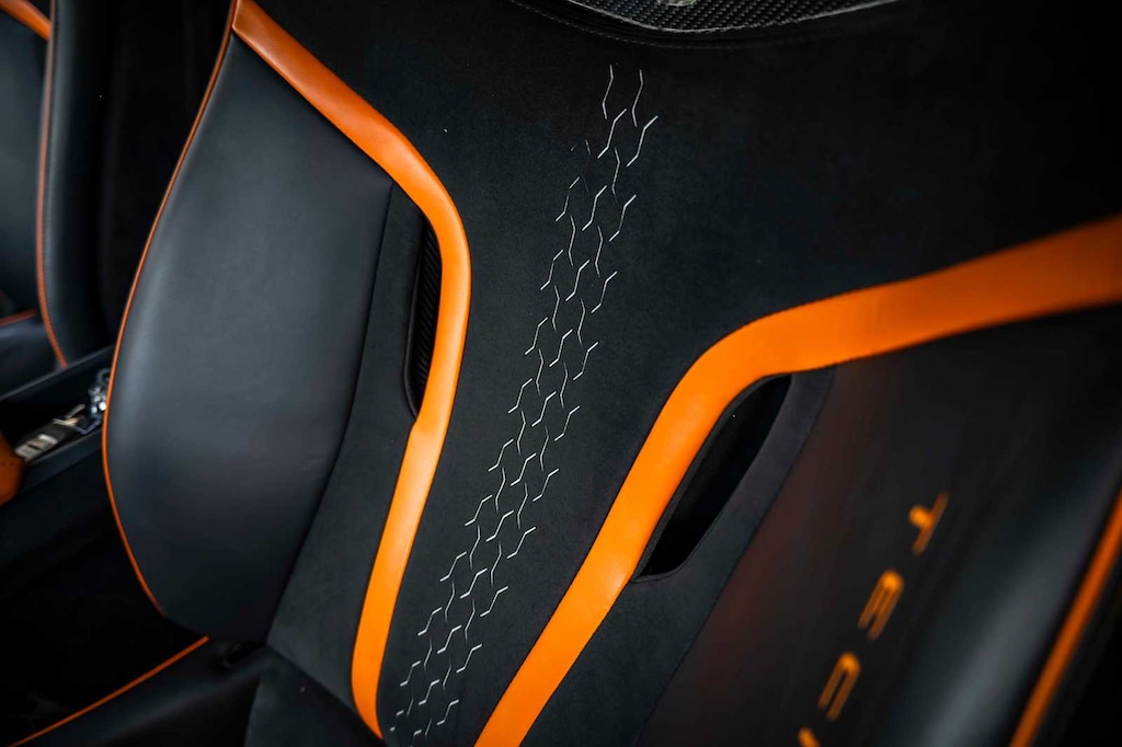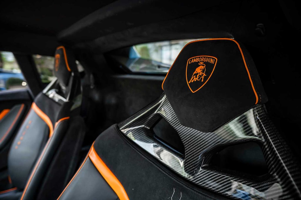 Factory options include Lift System, Orange CCB Calipers, Rear Bonnet Shiny Carbon, STO LED Door Logo Lights, Cup Holder & Smoker Package, and premium Nero Ade leather & Alcantara seat trim in unicolor and bicolor.