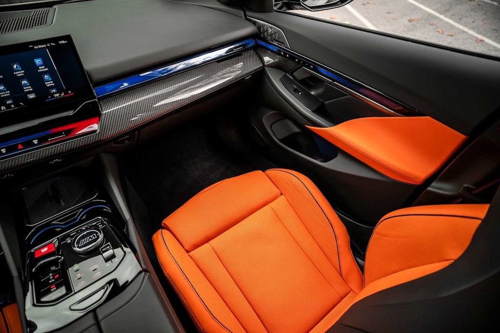 Leather Seats, Navigation, Sunroof, Panoramic Roof, All Wheel Drive, Power Liftgate, Rear Air, Heated Driver Seat, Back-Up Camera, Turbocharged Rear Spoiler, MP3 Player, Keyless Entry, Remote Trunk Release. BMW M Models with Frozen Deep Grey exterior and Kyalami Orange/Black interior features a 8 Cylinder Engine with 717 HP at 5600 RPM*. CARFAX 1-Owner AutoCheck One Owner Reduced from $119,998.
