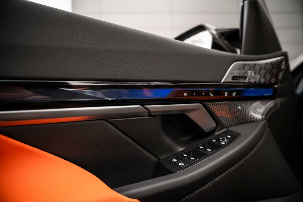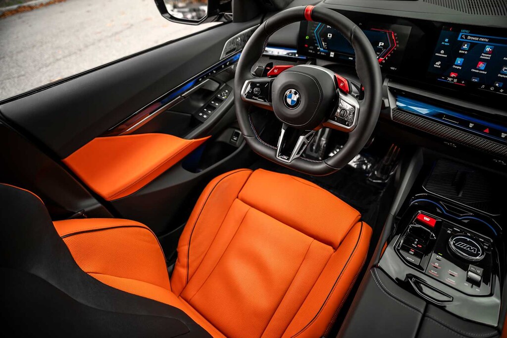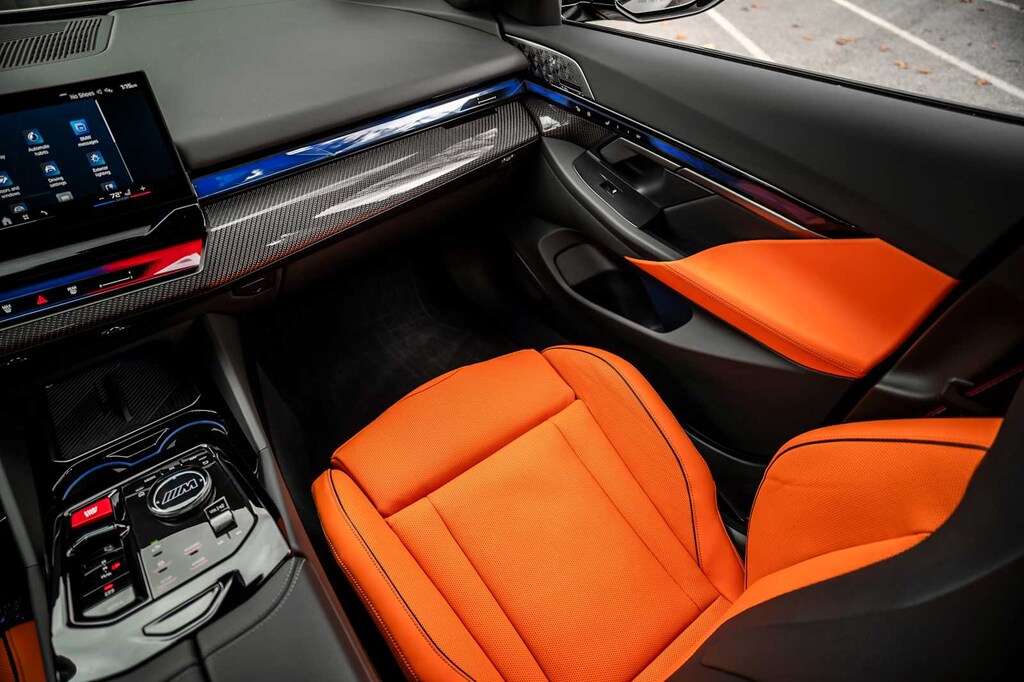 Leather Seats, Navigation, Sunroof, Panoramic Roof, All Wheel Drive, Power Liftgate, Rear Air, Heated Driver Seat, Back-Up Camera, Turbocharged Rear Spoiler, MP3 Player, Keyless Entry, Remote Trunk Release. BMW M Models with Frozen Deep Grey exterior and Kyalami Orange/Black interior features a 8 Cylinder Engine with 717 HP at 5600 RPM*. CARFAX 1-Owner AutoCheck One Owner Reduced from $119,998.