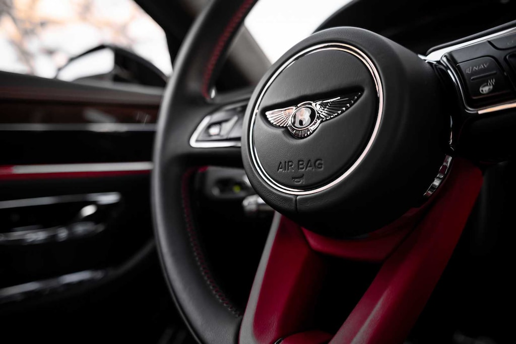 TOURING SPECIFICATION: Bentley safeguard plus, head-up display, lane assist, night vision and traffic assist, Adaptive Cruise Control, BANG & OLUFSEN FOR BENTLEY: 1,500 watt system, 16 speakers, 16 channel amplifier and 4 DSP modes, BENTLEY ROTATING DISPLAY: 3 sided rotating display that rotates from a veneer panel to a 12.3 touchscreen on start up, DARK FIDDLEBACK EUCALYPTUS OVER GRAND BLACK VENEER: By Mulliner, BLACK GLOSS ILLUMINATED FLYING B RADIATOR MASCOT, FLYING SPUR BLACKLINE SPECIFICATION: black gloss bumper lower matrix style grille surround, black gloss door handles brightware, black gloss front headlamp bezels, black gloss lower door brightware, black gloss rear bumper brightware, black gloss rear lamp bezels, black gloss rear number plate surround brightware, black gloss side window surrounds, black gloss tailpipes, black gloss wing vent and painted radiator shell w/black gloss matrix style grille and black surround, PAINT PROTECTION: Not available w/satin paints, PANORAMIC GLASS TILT & SLIDE SUNROOF W/TWIN BLINDS: vanity mirrors, DIAMOND KNURLING: diamond knurling to bulls-eye vents, front and rear console vents, organ stop controls and clock bezels, LEATHER SPECIFICATION: Hide replacing dinamica to seats, fascias, steering wheel and gear lever, CONTRAST STITCHING, MOOD LIGHTING SPECIFICATION: color controlled illuminated Bentley sill and derivative treadplate and interior mood lighting, WHEELS: 22 SPEED BLACK PAINTED, CONTRAST GEAR LEVER & STEERING WHEEL SPOKES BY MULLINER: hide gear lever and steering wheel spoke in contrasting color, FRONT & REAR DEEP PILE OVERMATS, SELF LEVELING WHEEL BADGE BY MULLINER, SOLID & METALLIC EXTENDED RANGE PAINT.