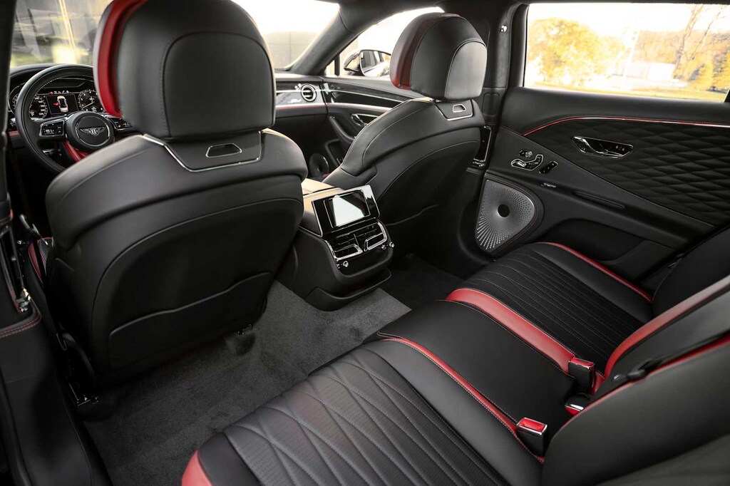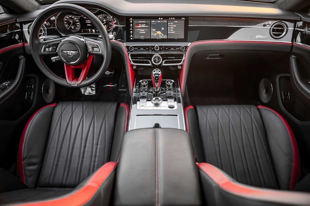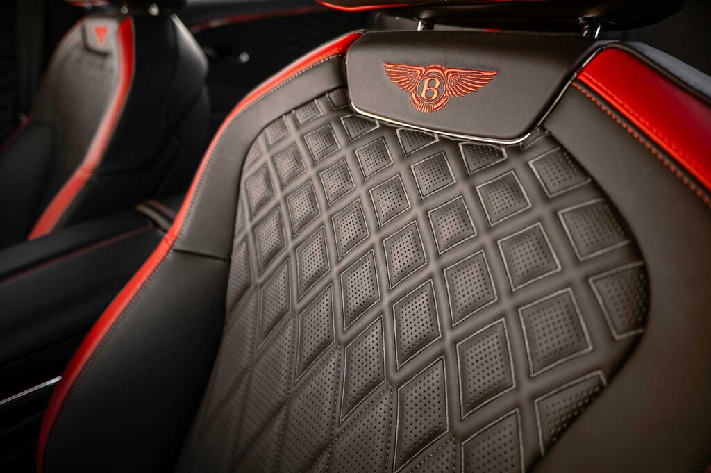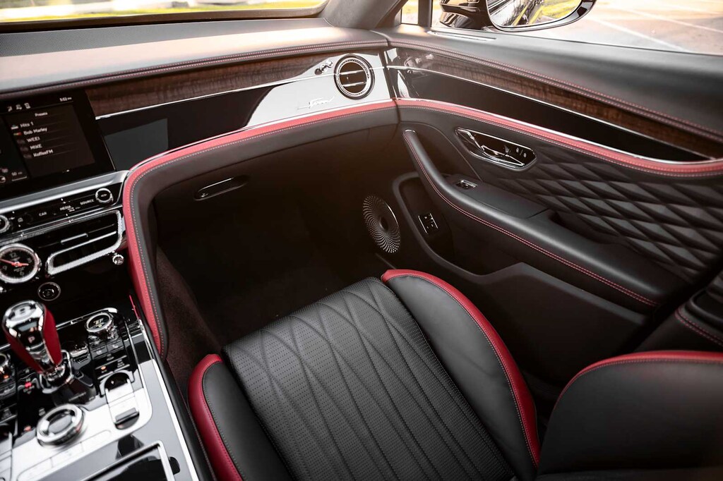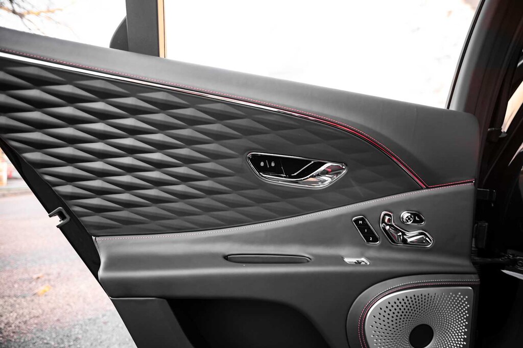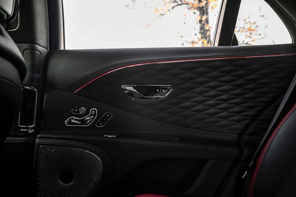 TOURING SPECIFICATION: Bentley safeguard plus, head-up display, lane assist, night vision and traffic assist, Adaptive Cruise Control, BANG & OLUFSEN FOR BENTLEY: 1,500 watt system, 16 speakers, 16 channel amplifier and 4 DSP modes, BENTLEY ROTATING DISPLAY: 3 sided rotating display that rotates from a veneer panel to a 12.3 touchscreen on start up, DARK FIDDLEBACK EUCALYPTUS OVER GRAND BLACK VENEER: By Mulliner, BLACK GLOSS ILLUMINATED FLYING B RADIATOR MASCOT, FLYING SPUR BLACKLINE SPECIFICATION: black gloss bumper lower matrix style grille surround, black gloss door handles brightware, black gloss front headlamp bezels, black gloss lower door brightware, black gloss rear bumper brightware, black gloss rear lamp bezels, black gloss rear number plate surround brightware, black gloss side window surrounds, black gloss tailpipes, black gloss wing vent and painted radiator shell w/black gloss matrix style grille and black surround, PAINT PROTECTION: Not available w/satin paints, PANORAMIC GLASS TILT & SLIDE SUNROOF W/TWIN BLINDS: vanity mirrors, DIAMOND KNURLING: diamond knurling to bulls-eye vents, front and rear console vents, organ stop controls and clock bezels, LEATHER SPECIFICATION: Hide replacing dinamica to seats, fascias, steering wheel and gear lever, CONTRAST STITCHING, MOOD LIGHTING SPECIFICATION: color controlled illuminated Bentley sill and derivative treadplate and interior mood lighting, WHEELS: 22 SPEED BLACK PAINTED, CONTRAST GEAR LEVER & STEERING WHEEL SPOKES BY MULLINER: hide gear lever and steering wheel spoke in contrasting color, FRONT & REAR DEEP PILE OVERMATS, SELF LEVELING WHEEL BADGE BY MULLINER, SOLID & METALLIC EXTENDED RANGE PAINT.