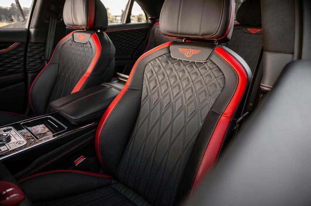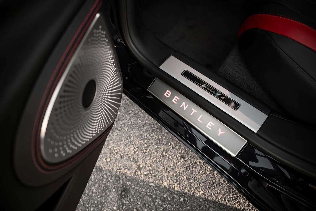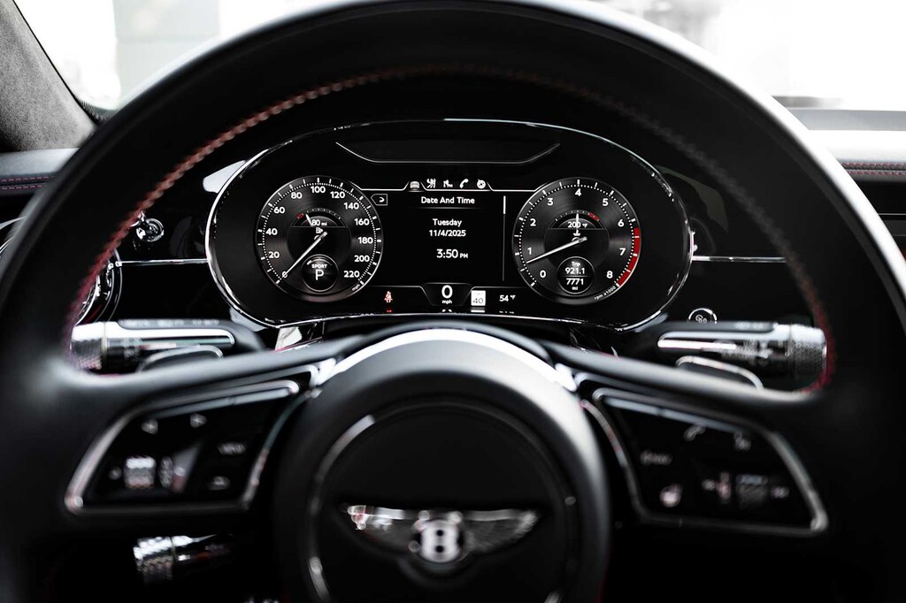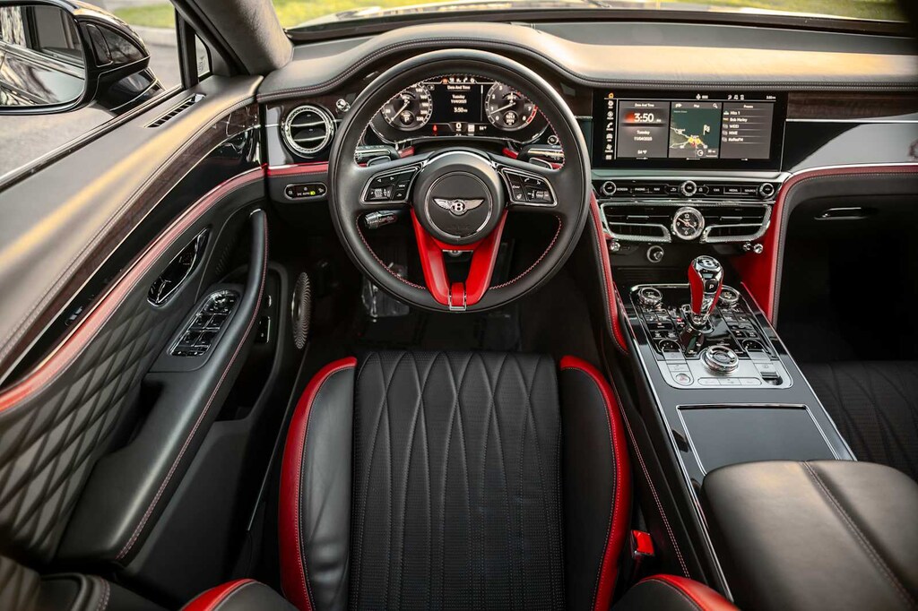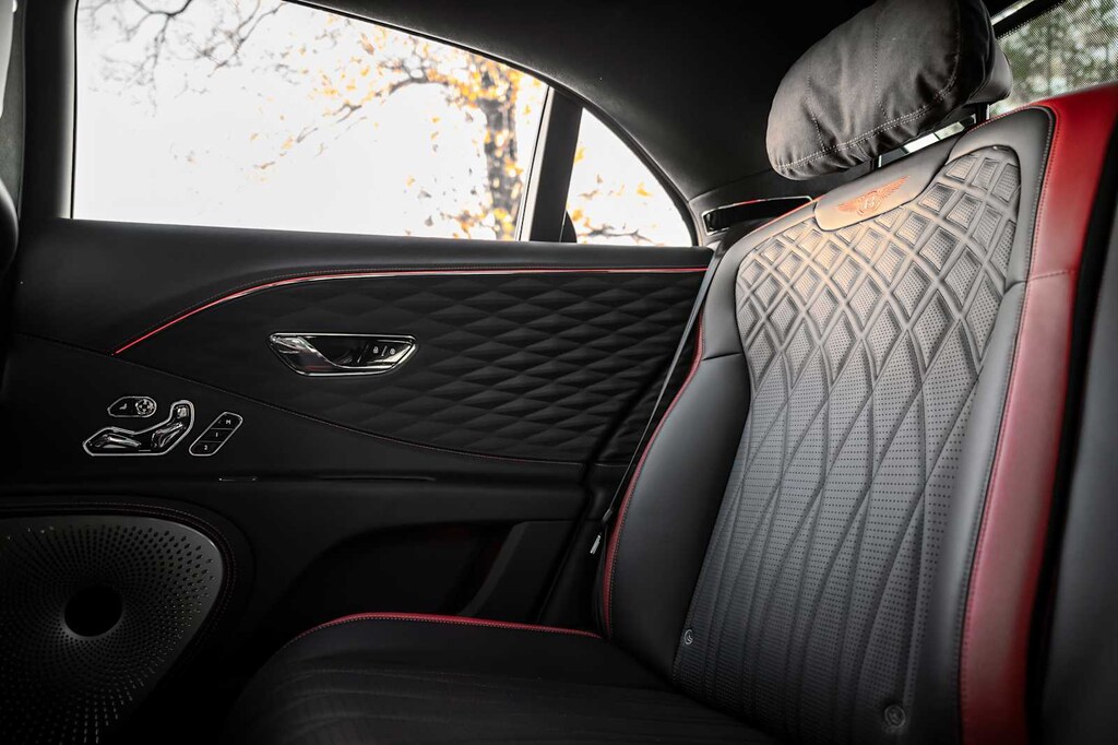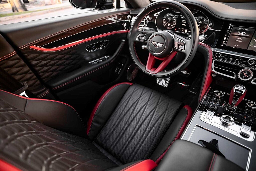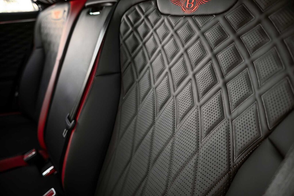 TOURING SPECIFICATION: Bentley safeguard plus, head-up display, lane assist, night vision and traffic assist, Adaptive Cruise Control, BANG & OLUFSEN FOR BENTLEY: 1,500 watt system, 16 speakers, 16 channel amplifier and 4 DSP modes, BENTLEY ROTATING DISPLAY: 3 sided rotating display that rotates from a veneer panel to a 12.3 touchscreen on start up, DARK FIDDLEBACK EUCALYPTUS OVER GRAND BLACK VENEER: By Mulliner, BLACK GLOSS ILLUMINATED FLYING B RADIATOR MASCOT, FLYING SPUR BLACKLINE SPECIFICATION: black gloss bumper lower matrix style grille surround, black gloss door handles brightware, black gloss front headlamp bezels, black gloss lower door brightware, black gloss rear bumper brightware, black gloss rear lamp bezels, black gloss rear number plate surround brightware, black gloss side window surrounds, black gloss tailpipes, black gloss wing vent and painted radiator shell w/black gloss matrix style grille and black surround, PAINT PROTECTION: Not available w/satin paints, PANORAMIC GLASS TILT & SLIDE SUNROOF W/TWIN BLINDS: vanity mirrors, DIAMOND KNURLING: diamond knurling to bulls-eye vents, front and rear console vents, organ stop controls and clock bezels, LEATHER SPECIFICATION: Hide replacing dinamica to seats, fascias, steering wheel and gear lever, CONTRAST STITCHING, MOOD LIGHTING SPECIFICATION: color controlled illuminated Bentley sill and derivative treadplate and interior mood lighting, WHEELS: 22 SPEED BLACK PAINTED, CONTRAST GEAR LEVER & STEERING WHEEL SPOKES BY MULLINER: hide gear lever and steering wheel spoke in contrasting color, FRONT & REAR DEEP PILE OVERMATS, SELF LEVELING WHEEL BADGE BY MULLINER, SOLID & METALLIC EXTENDED RANGE PAINT.