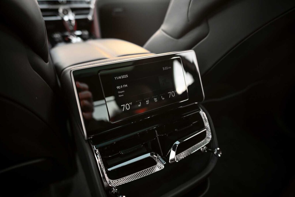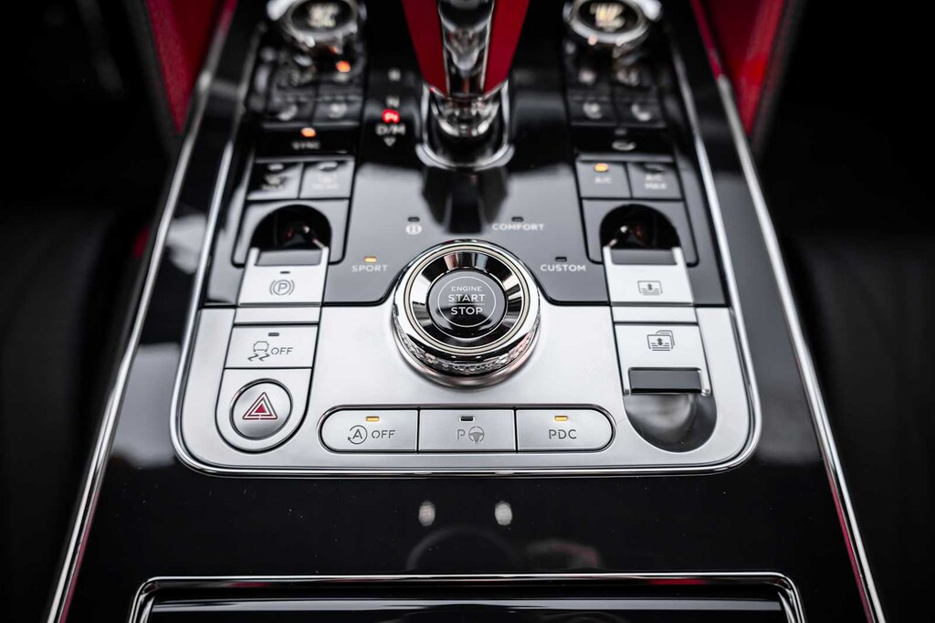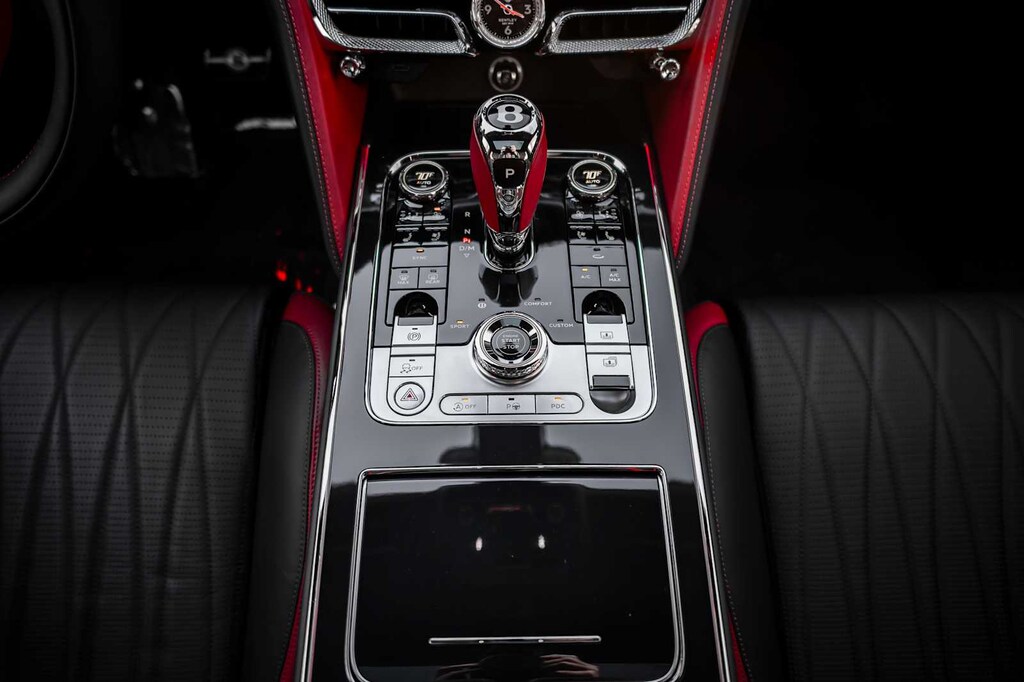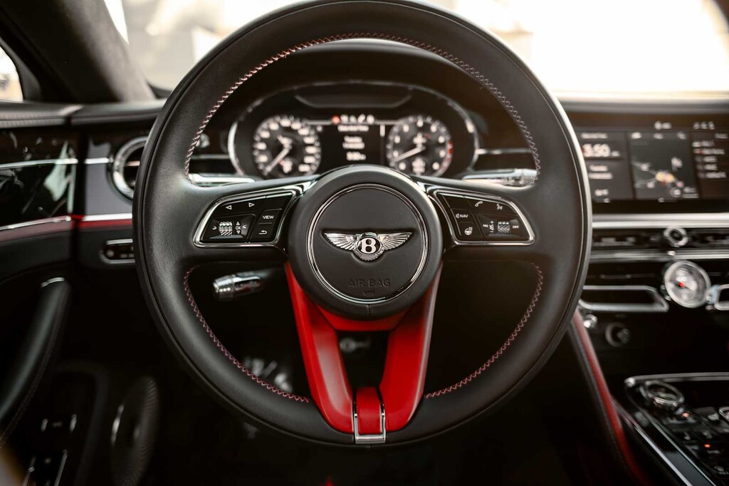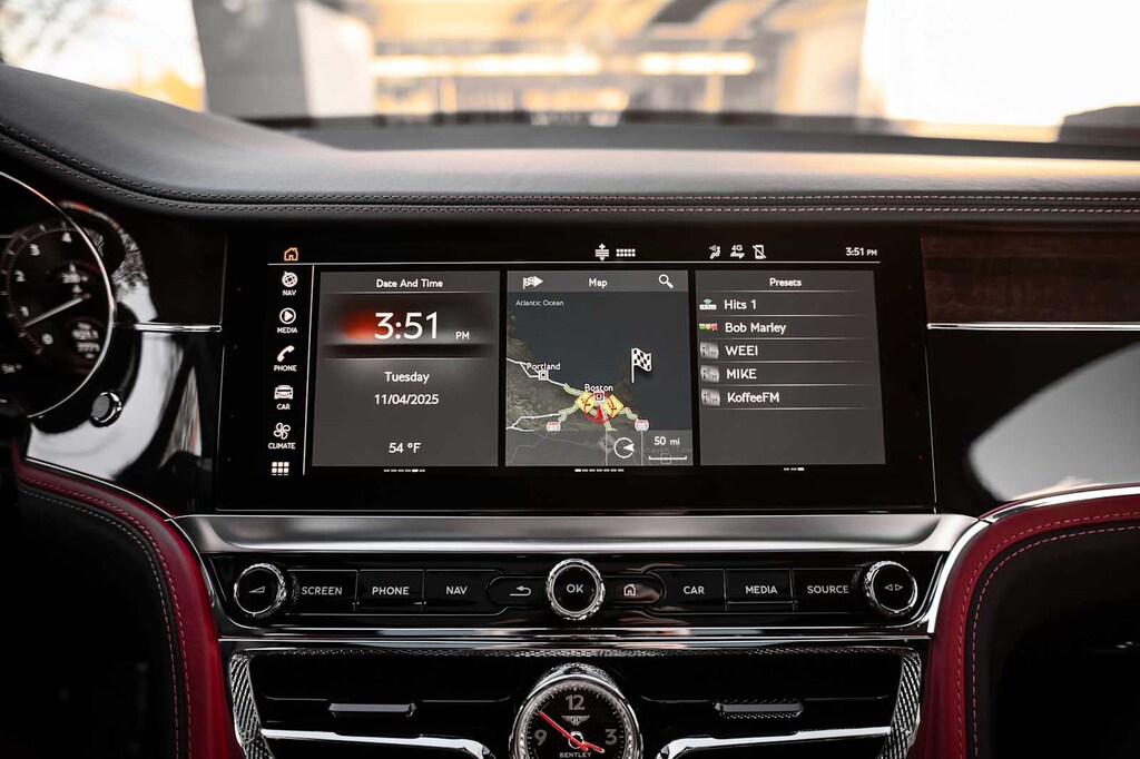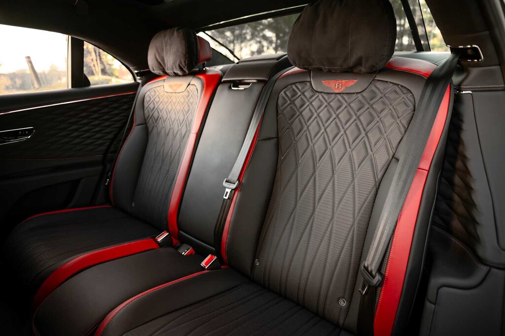 TOURING SPECIFICATION: Bentley safeguard plus, head-up display, lane assist, night vision and traffic assist, Adaptive Cruise Control, BANG & OLUFSEN FOR BENTLEY: 1,500 watt system, 16 speakers, 16 channel amplifier and 4 DSP modes, BENTLEY ROTATING DISPLAY: 3 sided rotating display that rotates from a veneer panel to a 12.3 touchscreen on start up, DARK FIDDLEBACK EUCALYPTUS OVER GRAND BLACK VENEER: By Mulliner, BLACK GLOSS ILLUMINATED FLYING B RADIATOR MASCOT, FLYING SPUR BLACKLINE SPECIFICATION: black gloss bumper lower matrix style grille surround, black gloss door handles brightware, black gloss front headlamp bezels, black gloss lower door brightware, black gloss rear bumper brightware, black gloss rear lamp bezels, black gloss rear number plate surround brightware, black gloss side window surrounds, black gloss tailpipes, black gloss wing vent and painted radiator shell w/black gloss matrix style grille and black surround, PAINT PROTECTION: Not available w/satin paints, PANORAMIC GLASS TILT & SLIDE SUNROOF W/TWIN BLINDS: vanity mirrors, DIAMOND KNURLING: diamond knurling to bulls-eye vents, front and rear console vents, organ stop controls and clock bezels, LEATHER SPECIFICATION: Hide replacing dinamica to seats, fascias, steering wheel and gear lever, CONTRAST STITCHING, MOOD LIGHTING SPECIFICATION: color controlled illuminated Bentley sill and derivative treadplate and interior mood lighting, WHEELS: 22 SPEED BLACK PAINTED, CONTRAST GEAR LEVER & STEERING WHEEL SPOKES BY MULLINER: hide gear lever and steering wheel spoke in contrasting color, FRONT & REAR DEEP PILE OVERMATS, SELF LEVELING WHEEL BADGE BY MULLINER, SOLID & METALLIC EXTENDED RANGE PAINT.