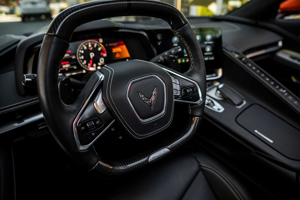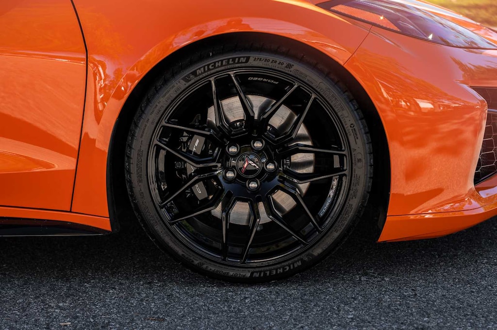 WHEELS, 20 X 10 (50.8 CM X 25.4 CM) FRONT AND 21 X 13 (53.3 CM X 33 CM) REAR SPIDER DESIGN, BLACK FORGED ALUMINUM, AUDIO SYSTEM, CHEVROLET INFOTAINMENT 3 PREMIUM SYSTEM WITH CONNECTED NAVIGATION 8 diagonal HD color touchscreen, AM/FM stereo, Bluetooth® audio streaming for 2 active devices, Apple CarPlay® and Android Auto® capable, enhanced voice recognition, additional memory for in-vehicle apps, cloud connected personalization for select infotainment and vehicle settings. (STD), ENGINE, 5.5L V8 DI, HIGH-OUTPUT Variable Valve Timing (VVT), (670 hp [499.6 kW] @ 8400 rpm, 460 lb-ft of torque [623.8 N-m] @ 6300 rpm) (STD), TRANSMISSION, 8-SPEED DUAL CLUTCH, INCLUDES MANUAL AND AUTO MODES (STD).