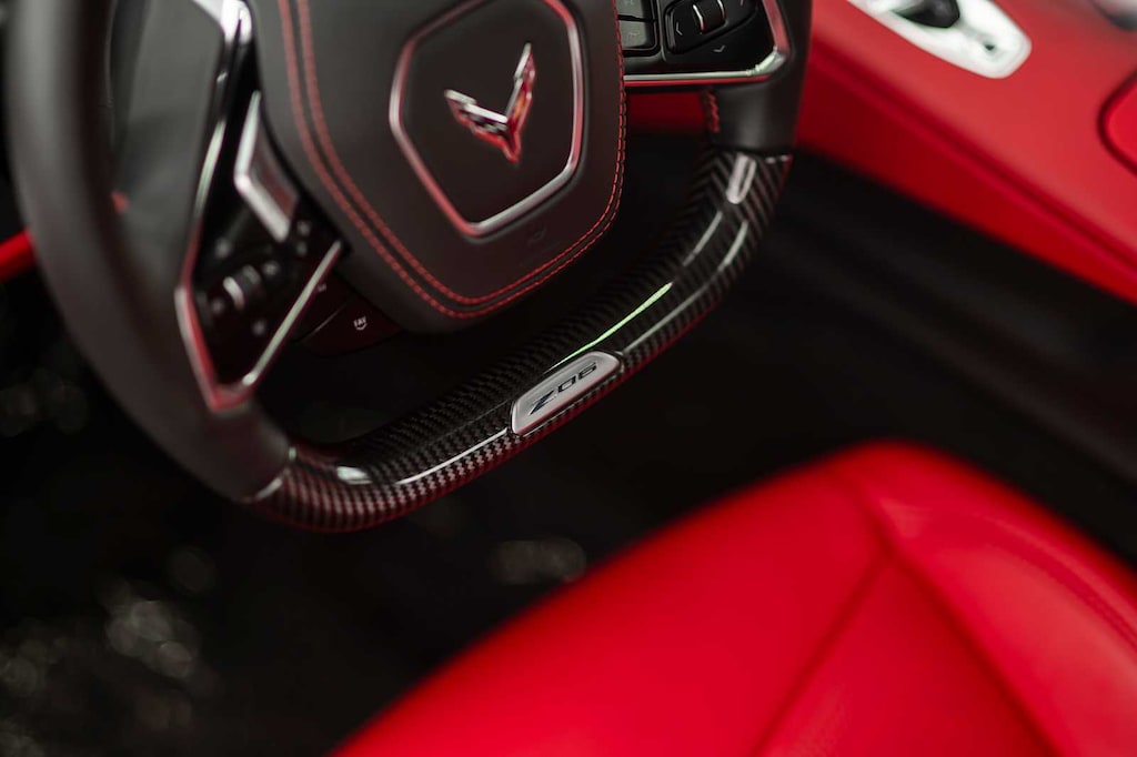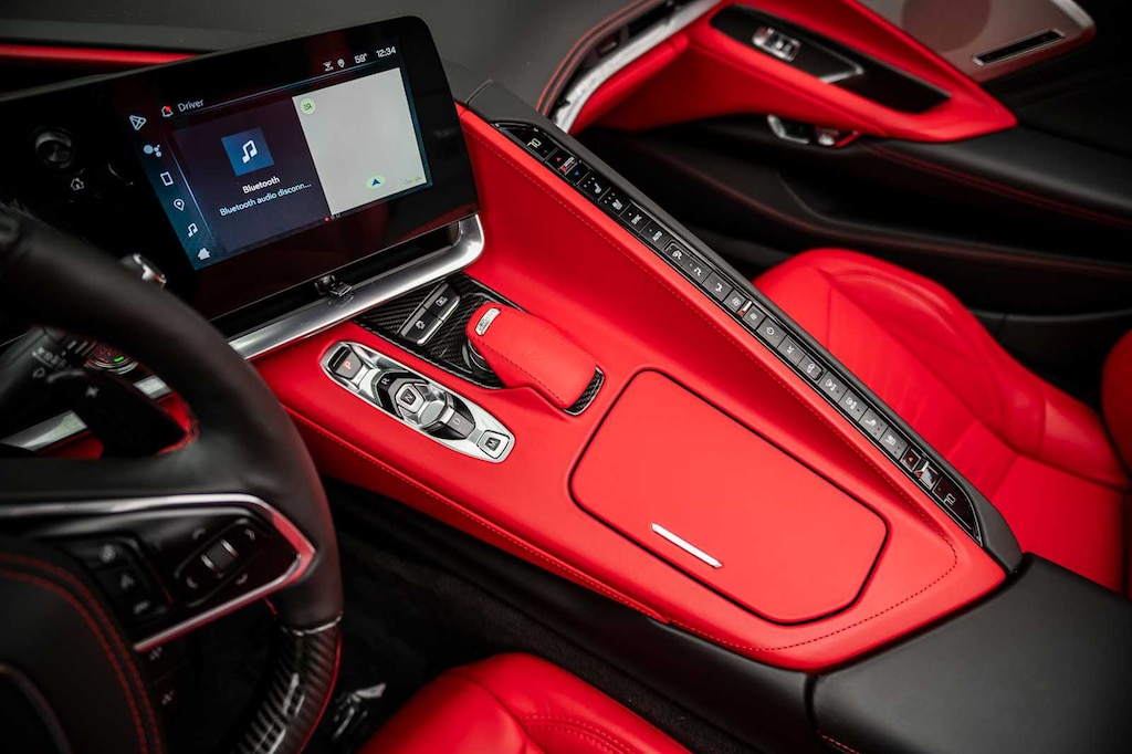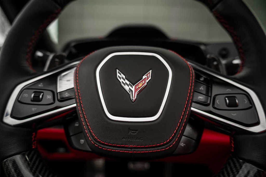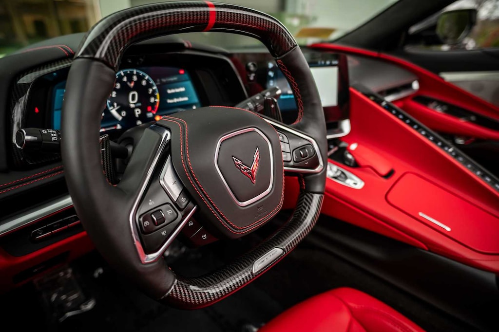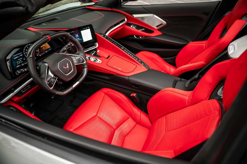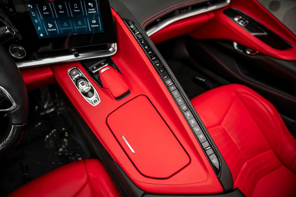 CONVERTIBLE TOP, CARBON FLASH-PAINTED NACELLES AND BODY-COLOR ROOF, WHEELS, 20 X 10 (50.8 CM X 25.4 CM) FRONT AND 21 X 13 (53.3 CM X 33 CM) REAR SPIDER DESIGN, BLACK FORGED ALUMINUM, AUDIO SYSTEM, CHEVROLET INFOTAINMENT 3 PREMIUM SYSTEM with Google built-in compatibility (select service plan required, terms and limitations apply) including navigation capability, 8 diagonal HD color touchscreen, includes multi-touch display, AM/FM stereo, Bluetooth® streaming audio for music and most phones; featuring Wireless Apple CarPlay® and Wireless Android Auto® capability for compatible phones, advanced voice recognition, in-vehicle apps, personalized profiles for infotainment and vehicle settings (STD), ENGINE, 5.5L V8 DI, HIGH-OUTPUT Variable Valve Timing (VVT), (670 hp [499.6 kW] @ 8400 rpm, 460 lb-ft of torque [623.8 N-m] @ 6300 rpm) (STD), TRANSMISSION, 8-SPEED DUAL CLUTCH, INCLUDES MANUAL AND AUTO MODES (STD).
