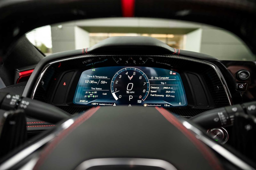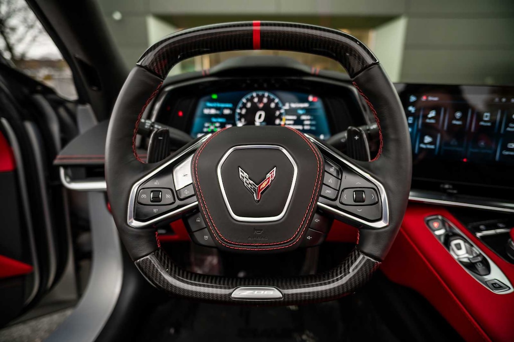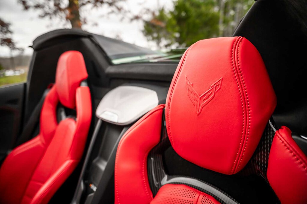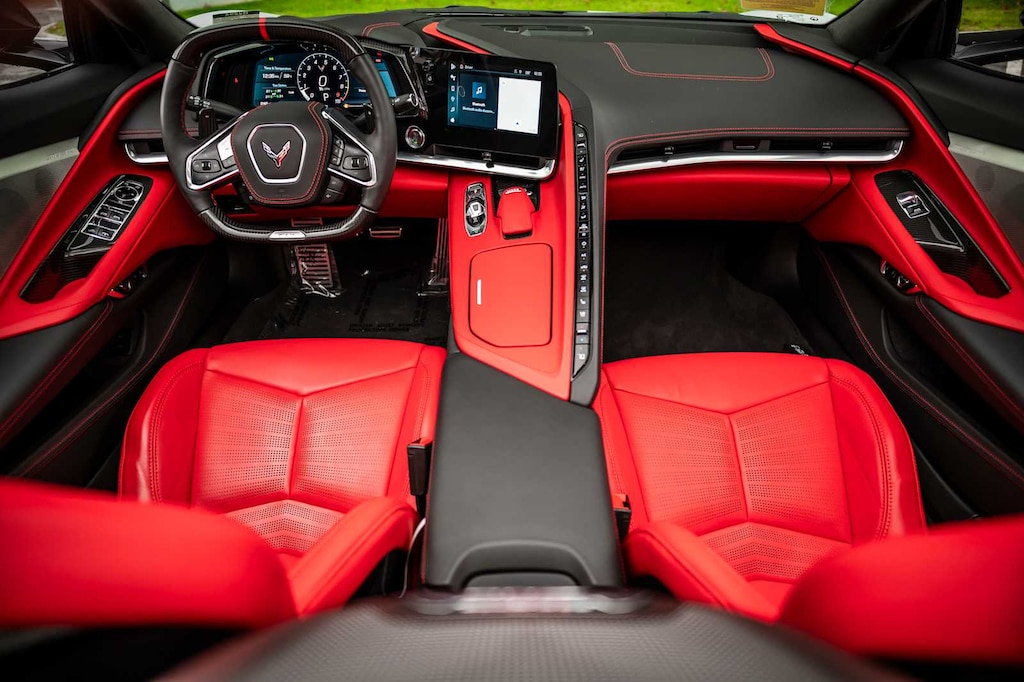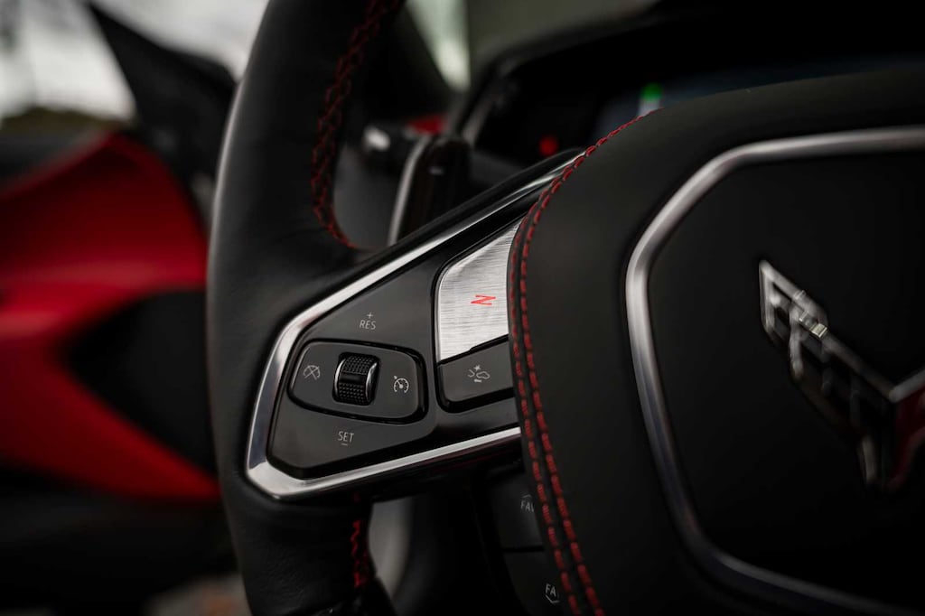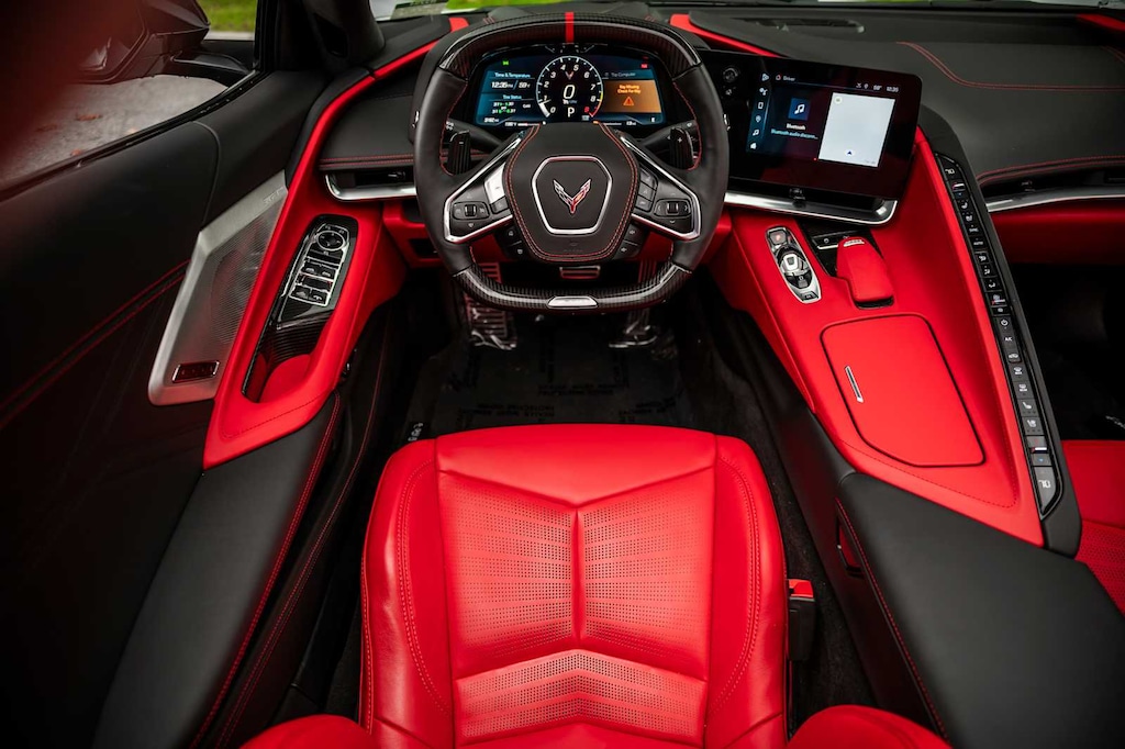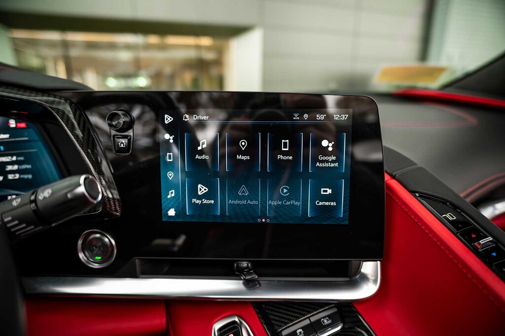 CONVERTIBLE TOP, CARBON FLASH-PAINTED NACELLES AND BODY-COLOR ROOF, WHEELS, 20 X 10 (50.8 CM X 25.4 CM) FRONT AND 21 X 13 (53.3 CM X 33 CM) REAR SPIDER DESIGN, BLACK FORGED ALUMINUM, AUDIO SYSTEM, CHEVROLET INFOTAINMENT 3 PREMIUM SYSTEM with Google built-in compatibility (select service plan required, terms and limitations apply) including navigation capability, 8 diagonal HD color touchscreen, includes multi-touch display, AM/FM stereo, Bluetooth® streaming audio for music and most phones; featuring Wireless Apple CarPlay® and Wireless Android Auto® capability for compatible phones, advanced voice recognition, in-vehicle apps, personalized profiles for infotainment and vehicle settings (STD), ENGINE, 5.5L V8 DI, HIGH-OUTPUT Variable Valve Timing (VVT), (670 hp [499.6 kW] @ 8400 rpm, 460 lb-ft of torque [623.8 N-m] @ 6300 rpm) (STD), TRANSMISSION, 8-SPEED DUAL CLUTCH, INCLUDES MANUAL AND AUTO MODES (STD).