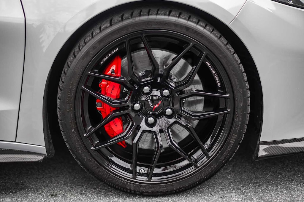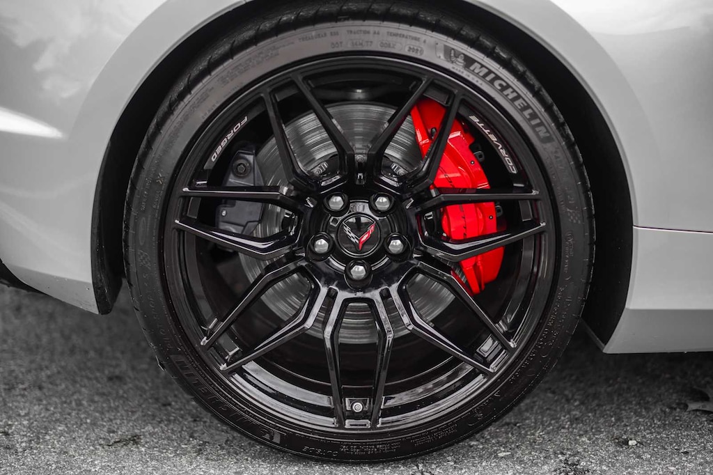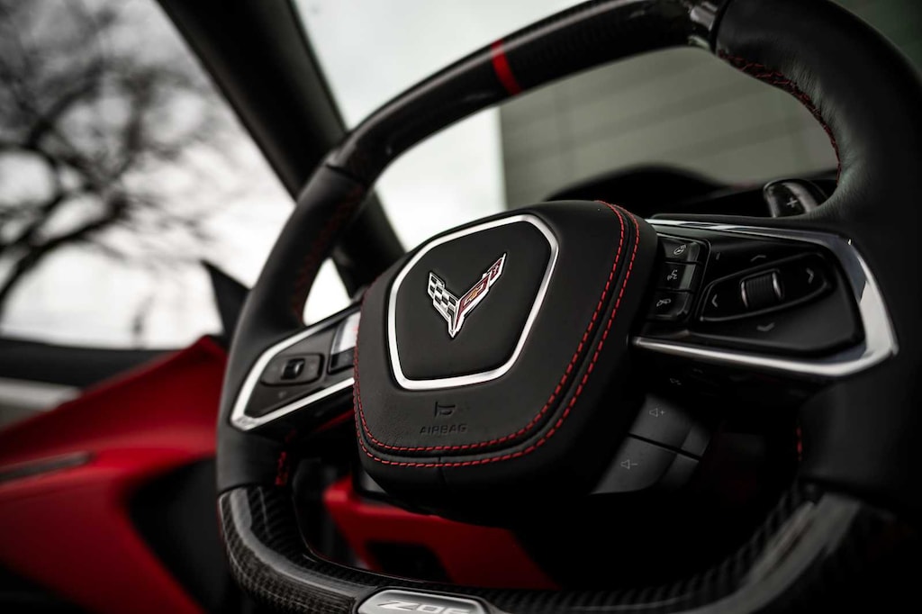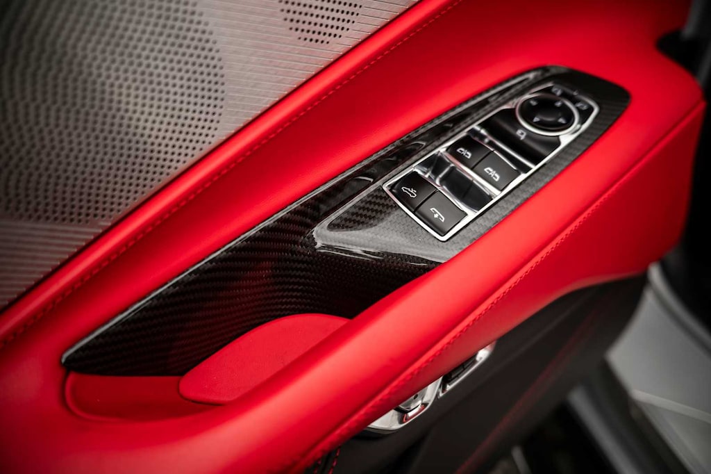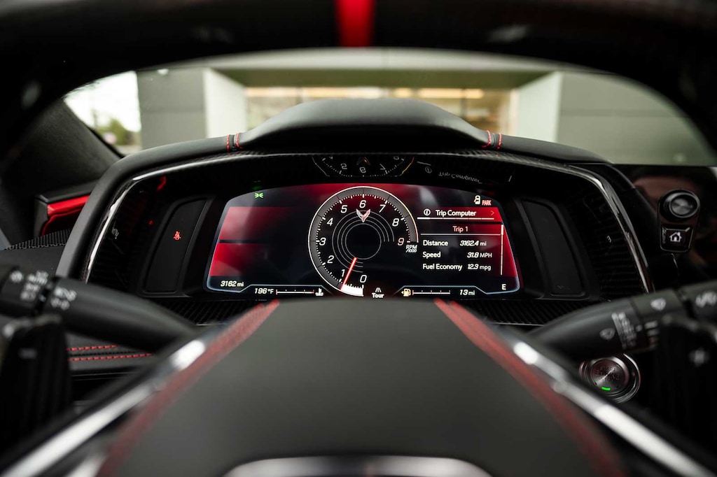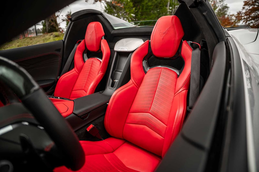 CONVERTIBLE TOP, CARBON FLASH-PAINTED NACELLES AND BODY-COLOR ROOF, WHEELS, 20 X 10 (50.8 CM X 25.4 CM) FRONT AND 21 X 13 (53.3 CM X 33 CM) REAR SPIDER DESIGN, BLACK FORGED ALUMINUM, AUDIO SYSTEM, CHEVROLET INFOTAINMENT 3 PREMIUM SYSTEM with Google built-in compatibility (select service plan required, terms and limitations apply) including navigation capability, 8 diagonal HD color touchscreen, includes multi-touch display, AM/FM stereo, Bluetooth® streaming audio for music and most phones; featuring Wireless Apple CarPlay® and Wireless Android Auto® capability for compatible phones, advanced voice recognition, in-vehicle apps, personalized profiles for infotainment and vehicle settings (STD), ENGINE, 5.5L V8 DI, HIGH-OUTPUT Variable Valve Timing (VVT), (670 hp [499.6 kW] @ 8400 rpm, 460 lb-ft of torque [623.8 N-m] @ 6300 rpm) (STD), TRANSMISSION, 8-SPEED DUAL CLUTCH, INCLUDES MANUAL AND AUTO MODES (STD).