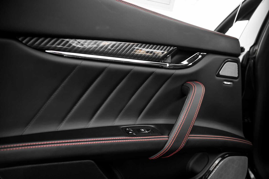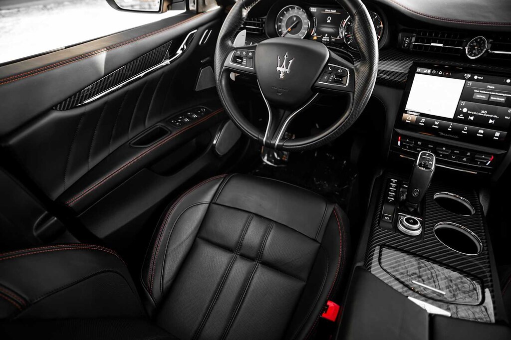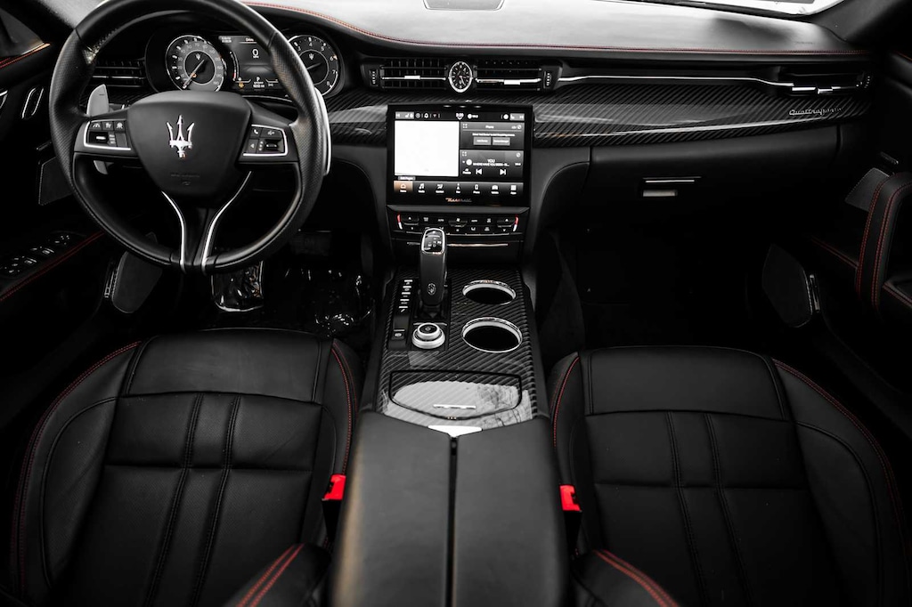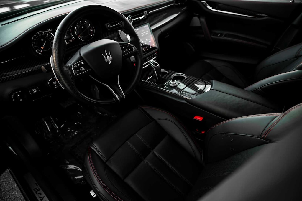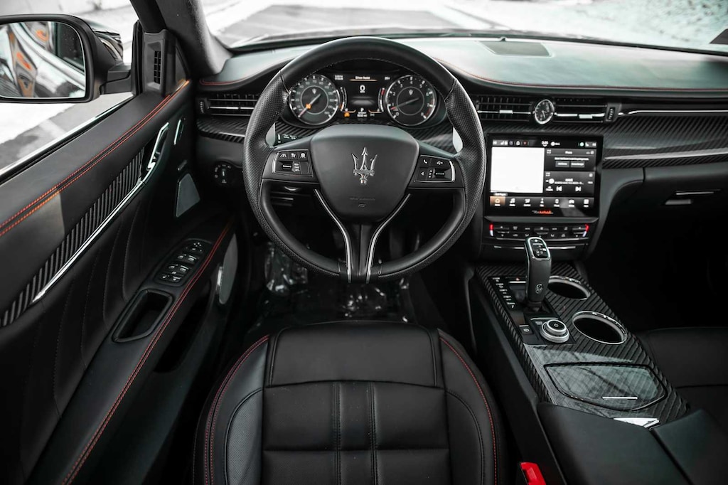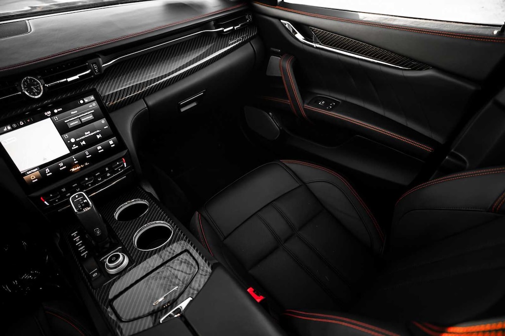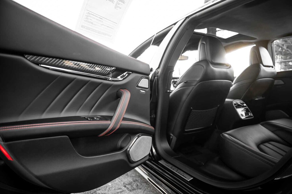 Leather Seats, Navigation, Sunroof, All Wheel Drive, Power Liftgate, Heated Driver Seat, Heated Rear Seat, Cooled Driver Seat, Back-Up Camera, Premium Sound System MP3 Player, Remote Trunk Release, Keyless Entry, Child Safety Locks. Maserati Modena Ultima Q4 with Nero Assoluto Metallic exterior and Black w/Red Stitching interior features a V6 Cylinder Engine with 424 HP at 5750 RPM*. Was $82,998.